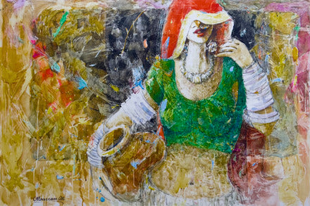 Women with Pitcher series | Moazzam Ali | 30 x 42 inches